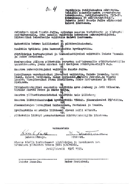 Osastomme kuuluu kuuteen rekisteröityyn perustajaosastoon, jotka 30. - 31. lokakuuta 1955 olivat allekirjoittamassa ja perustamassa Sähköliittoa. Kokouksessa 004:n jäsenistä olivat Kaarlo Julku Petäjäskoskelta ja Kalevi Henttonen silloisesta Kemijoen sähkötyöntekijöistä. Muut osastot olivat Veitsiluodolta, Oulusta, Hämeenlinnasta, Haminasta ja Muhokselta. Oulun, Veitsiluodon, Petäjäskosken ja Muhoksen osastot myös rahoittivat Sähköliiton alun yhteensä 200 000 markalla. Kaarlo Julku toimi ensimmäisen kokouksen puheenjohtajana sekä ensimmäisen valtuuston puheenjohtajana ja Kalevi Henttonen ensimmäisen liittotoimikunnan jäsenenä.