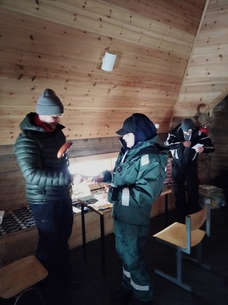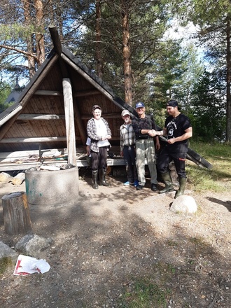 ![]() Pilkkikilpailun osallistujat makkaranpaistossa |